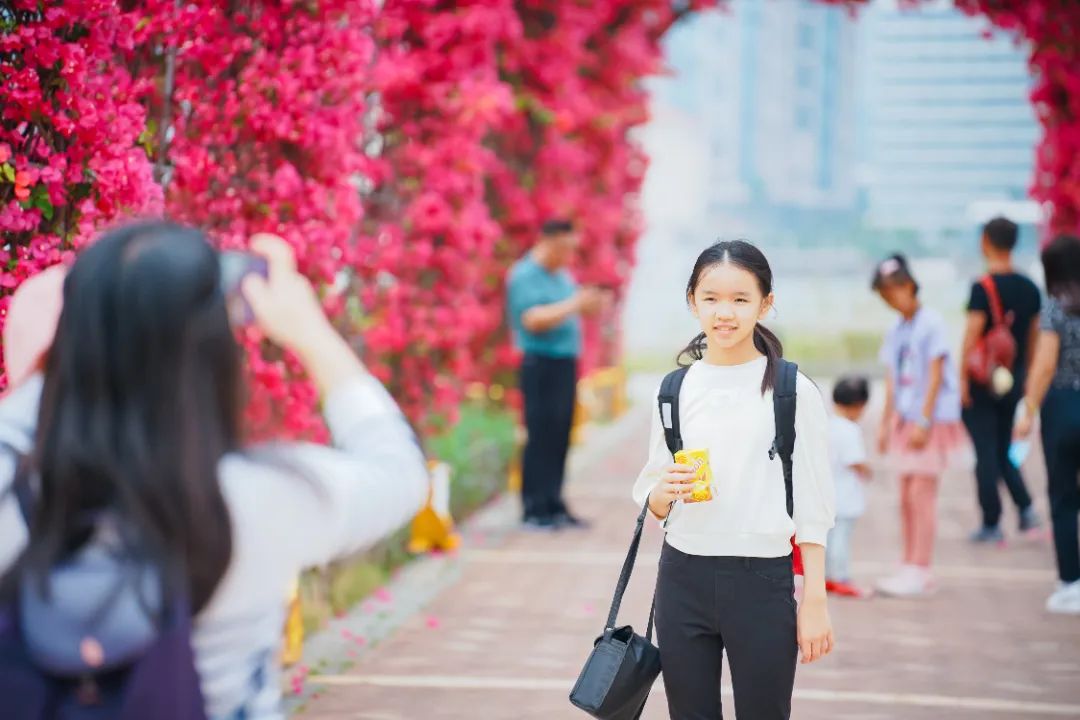 上午,在花海长廊间漫步,感受自然气息。在认识花海生态的过程中,来自横琴的自然导师还带领亲子家庭们走进各具特色的花海驿站,大家亲手寄出了一张饱含情感并相约来年自然周再聚合作区的时光明信片。