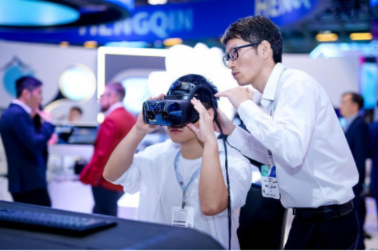 参展观众现场体验最新科技产品