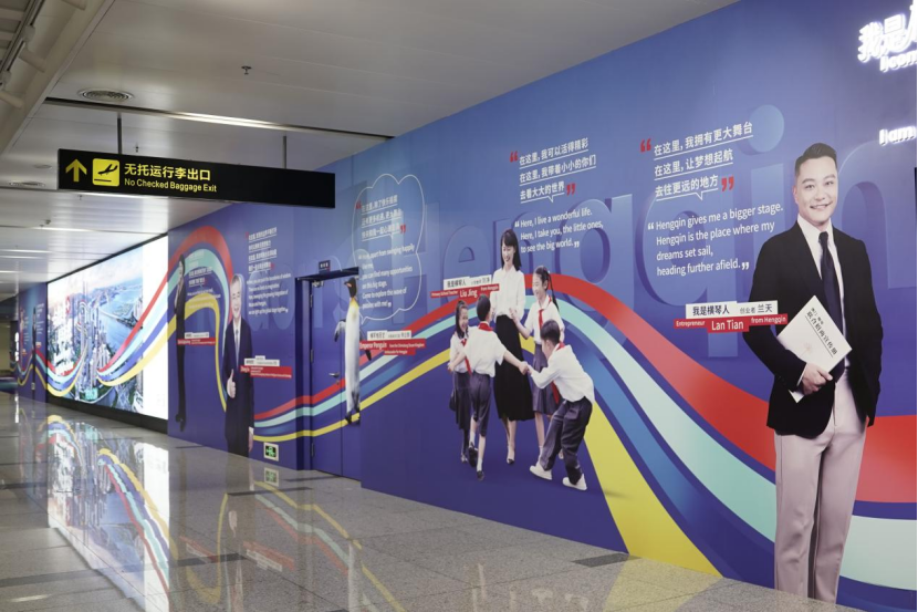 值得一提的是,在珠海金湾机场抵达厅出口处,现场还设置专题展示、拍照打卡及创意互动空间。旅客们抵达机场出口处即可见到横琴全球招商推广主题形象及四色跑道上的炫彩飞机装置,代表横琴成为助力梦想启航的地方,旅客们可在现场打卡留念。此外,现场还设置了创意互动区,旅客们可上前击掌“助力横琴·梦想启航”,墙上装置也将随之刷新助力数值,留下大家美好的梦想和祝福。