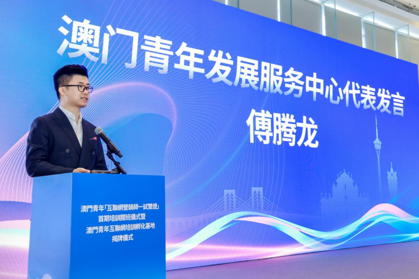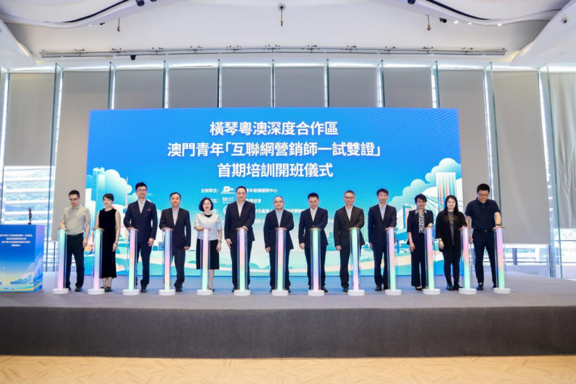 7月24日,澳门青年“互联网营销师一试双证”首期公益培训开班仪式暨“澳门青年互联网培训孵化基地”揭牌仪式在横琴粤澳深度合作区(简称:合作区)创新方跨境电商产业园举行。本次活动由澳门青年发展服务中心主办,旨在为澳门青年提供创业和发展机会,助力澳门青年在数字经济时代快速成长,为澳琴互联网产业升级提供人才赋能。