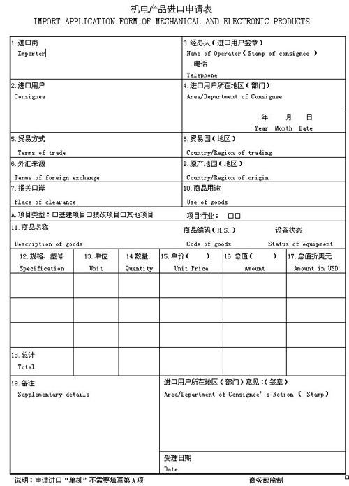 (一)机电产品进口申请表(见附件2);