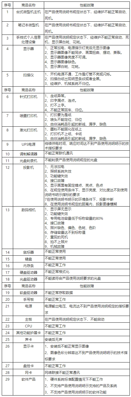 第十二条 售出后第8日至第15日内,微型计算机主机、外设商品出现本规定《微型计算机商品性能故障表》所列性能故障时,消费者可选择换货或者修理。消费者要求换货时,销售者应当负责为消费者调换同型号同规格的商品;同型号同规格的产品停止生产时,应当调换不低于原产品性能的同品牌商品。