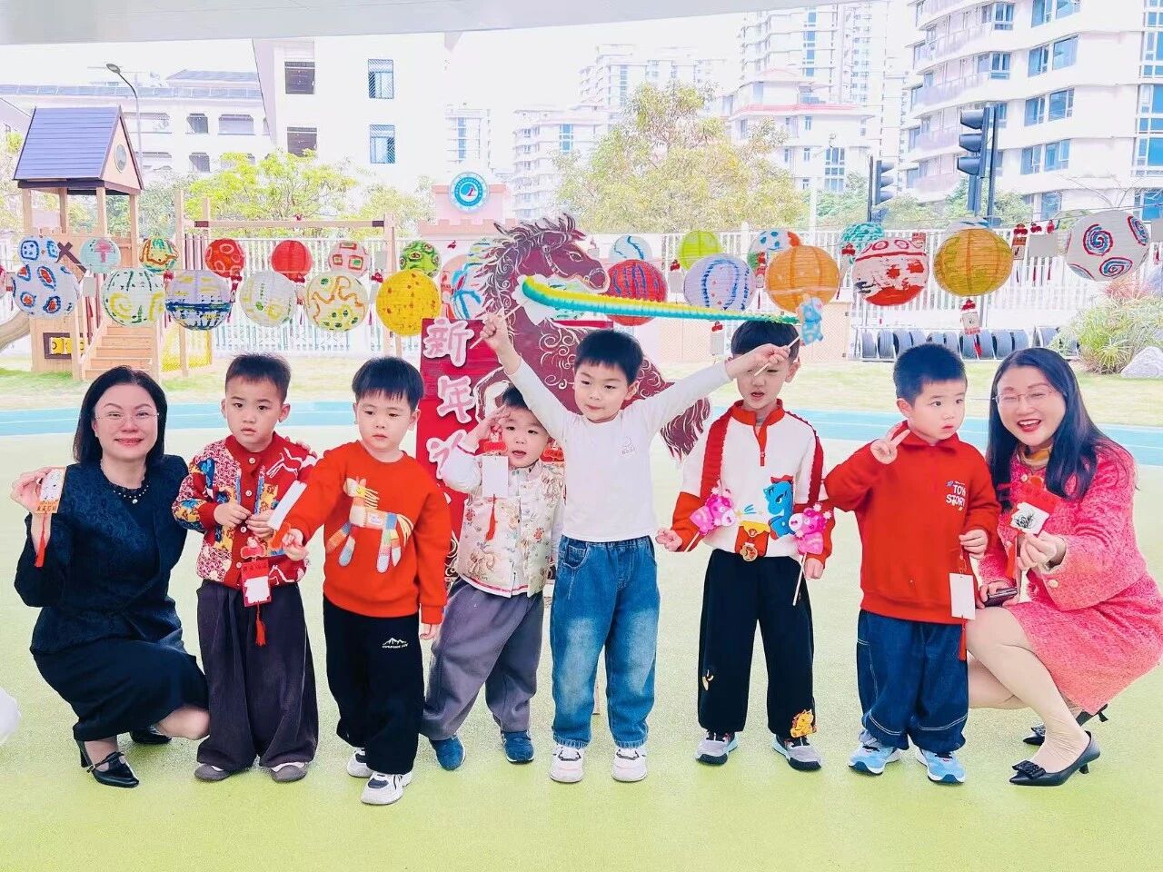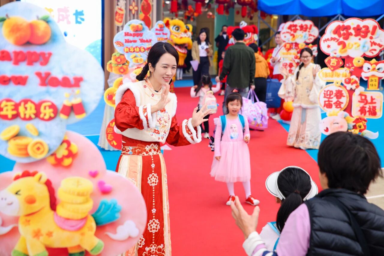 充满年味的元宵庙会在校园举行,让幼儿在趣味集市中感受传统文化的魅力。