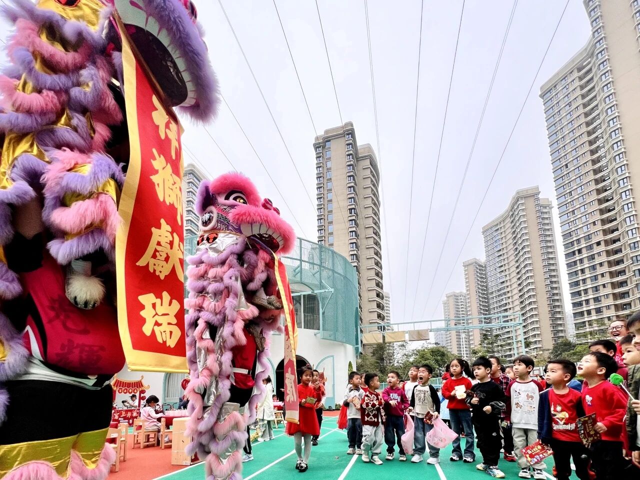 雄狮腾跃送福,将吉祥寓意传递给每一位同学。