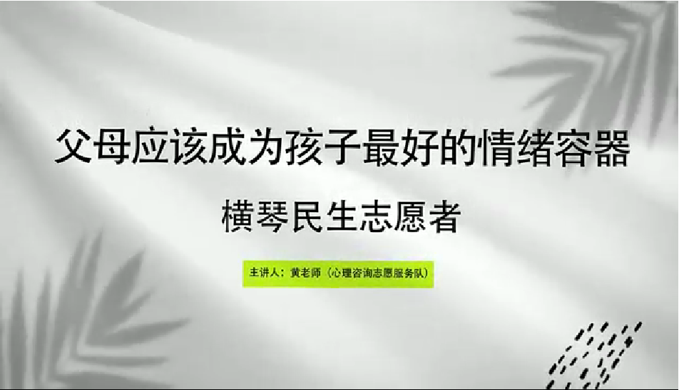 [民生志愿者微课堂]心理微课堂-父母应该成为孩子最好的情绪容器