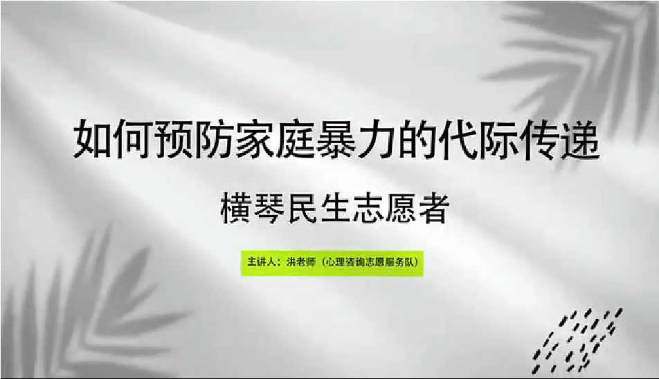 [民生志愿者微课堂]心理微课堂-关注家庭心理健康疏导,预防家庭暴力代际传递