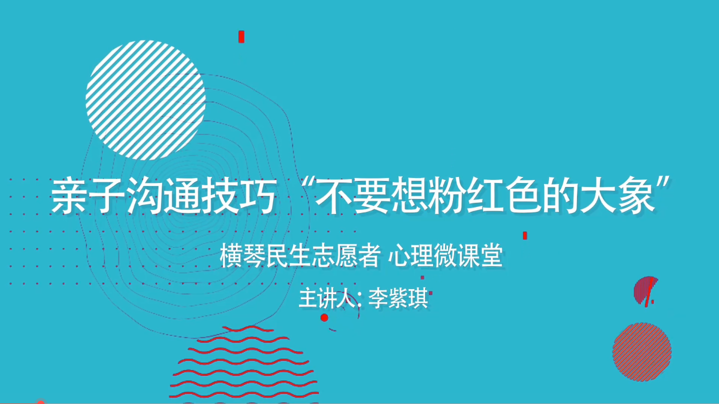 [横琴民生志愿者]心理微课堂——亲子沟通技巧“不要想粉红色的大象”