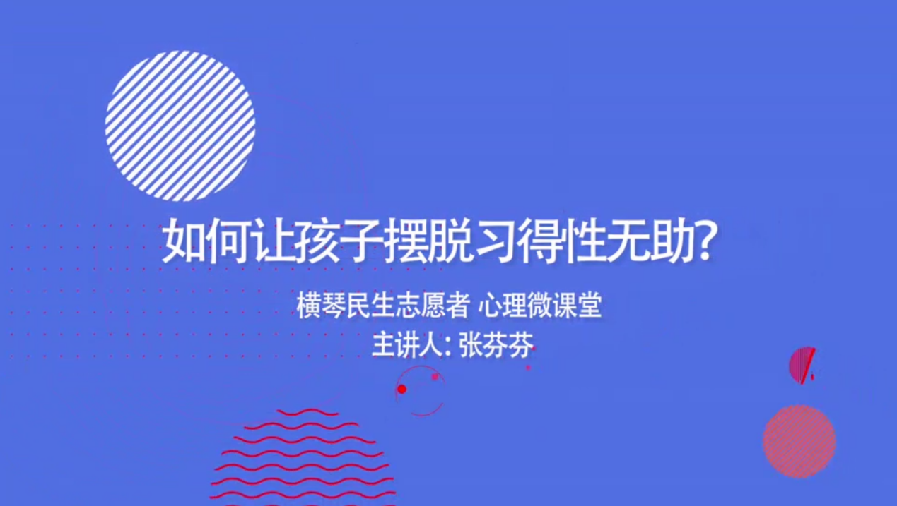 [横琴民生志愿者]心理微课堂——如何让孩子摆脱习得性无助