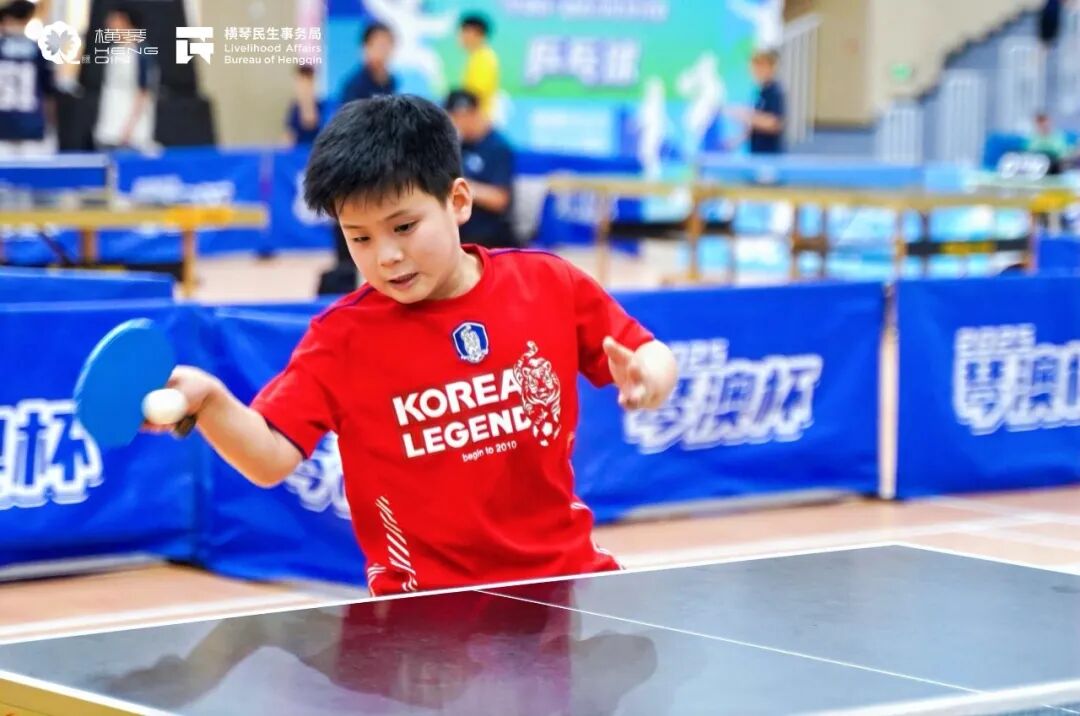 乒乓球赛场上,小小的银球在球台上来回飞梭,划出一道道优美的弧线。琴澳两地的青少年选手们精神饱满、斗志昂扬地进行竞技。