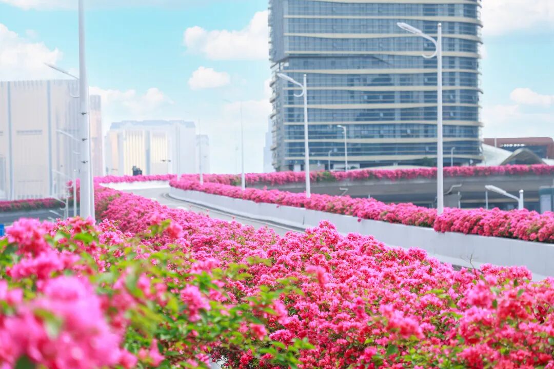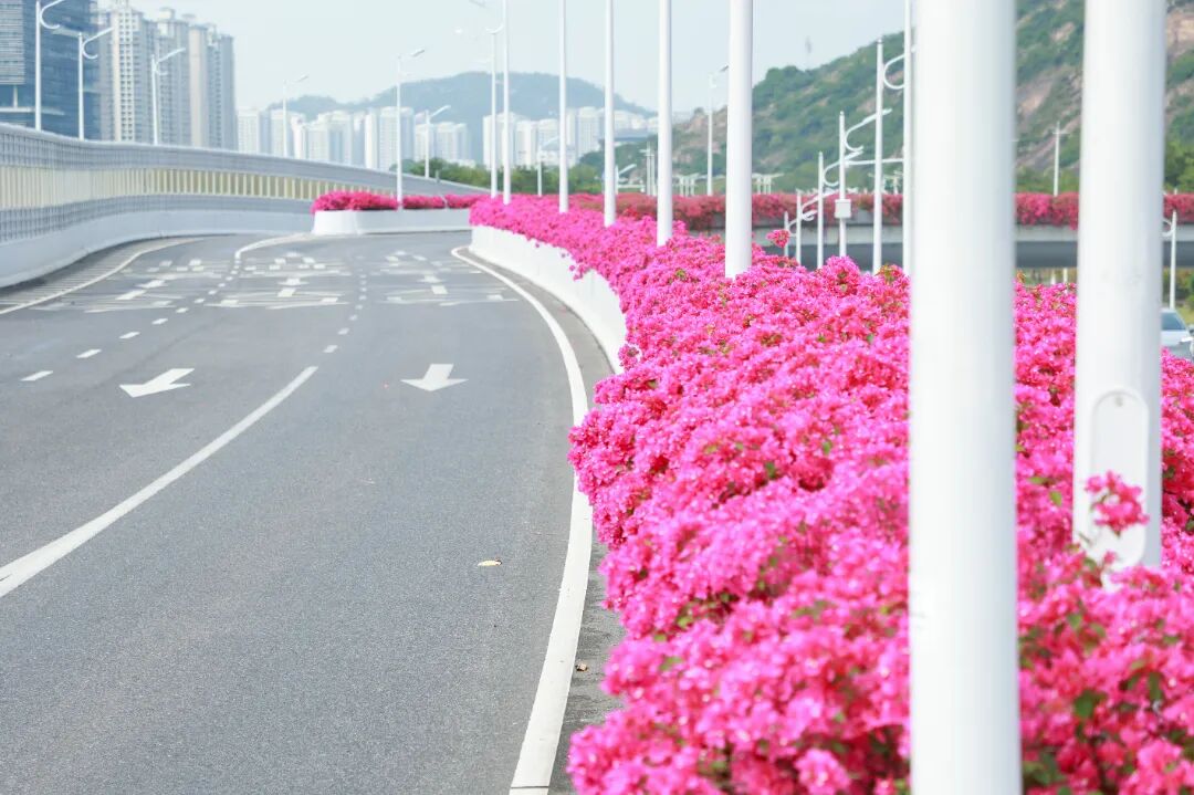 簕杜鹃仍在车道两旁热烈绽放