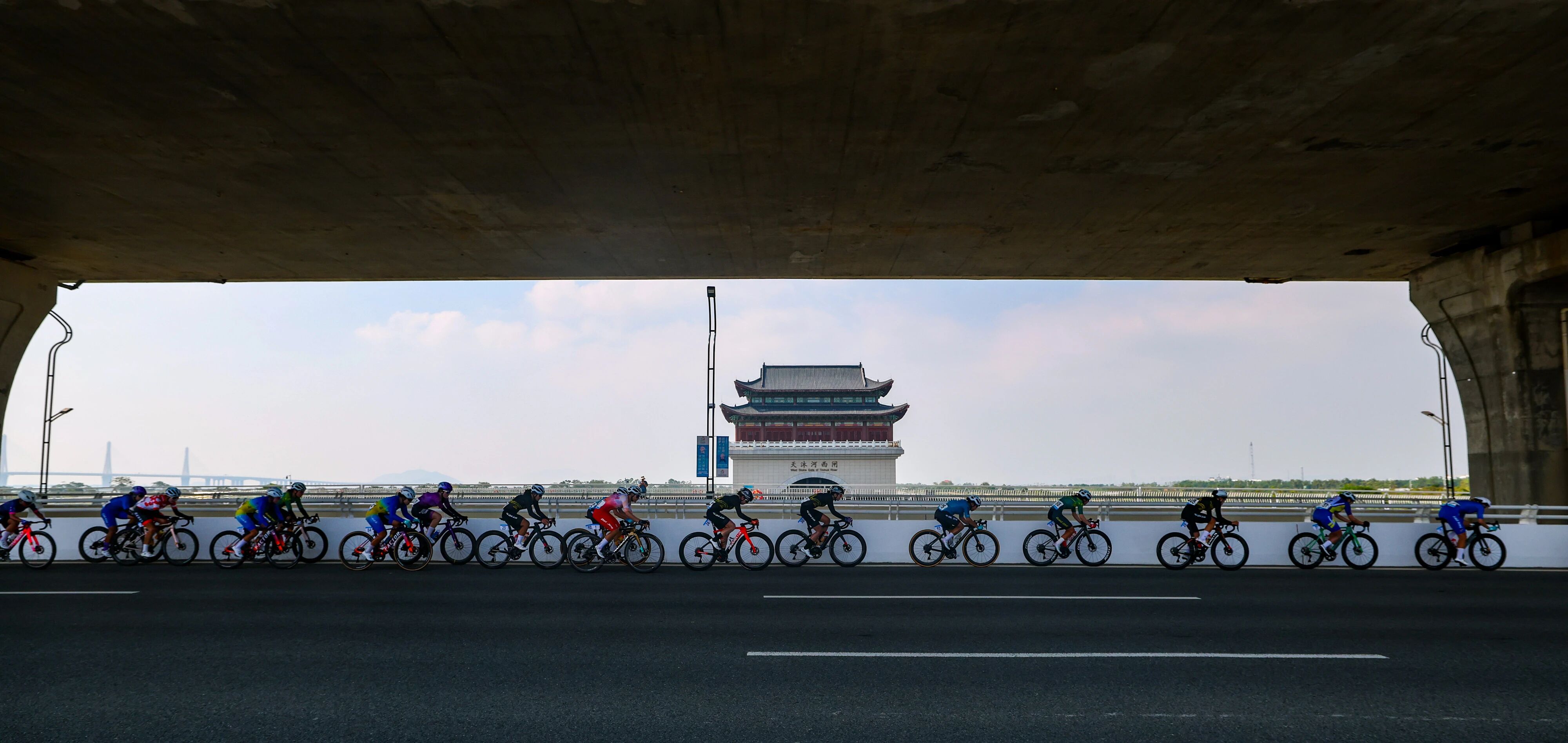 当运动员骑着自行车驶过环岛东路时