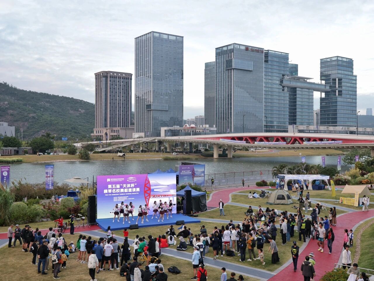 横琴赛艇公园沿河步道、福福桥红色廊道