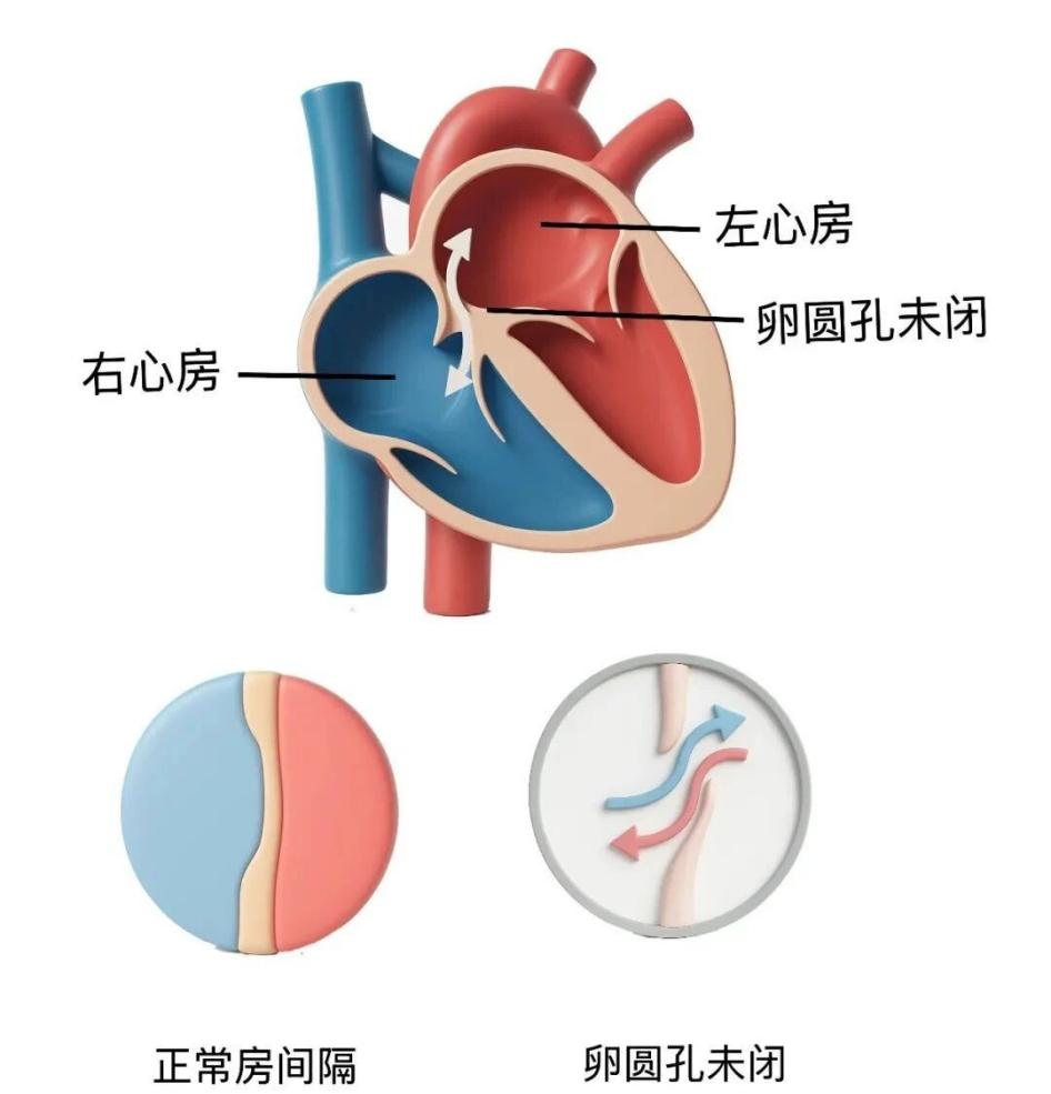 罗红波介绍,卵圆孔是胎儿期维持血液循环的重要通道,出生后随着肺循环建立,大多数人的卵圆孔会在数月内自然闭合。