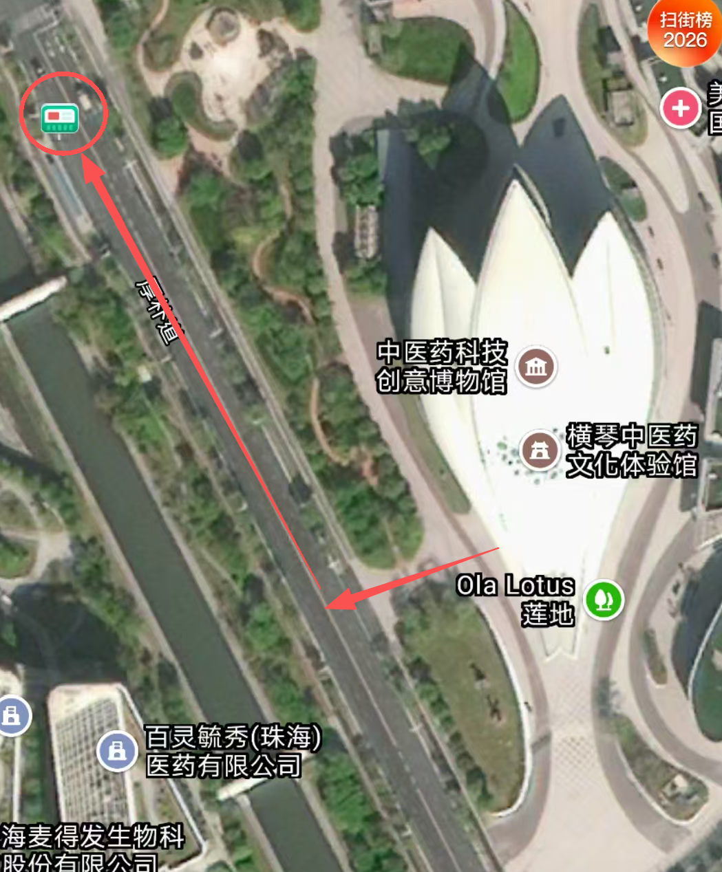 往横琴口岸方向:“中医药产业园”站点→“横琴口岸东”或“横琴口岸”站点