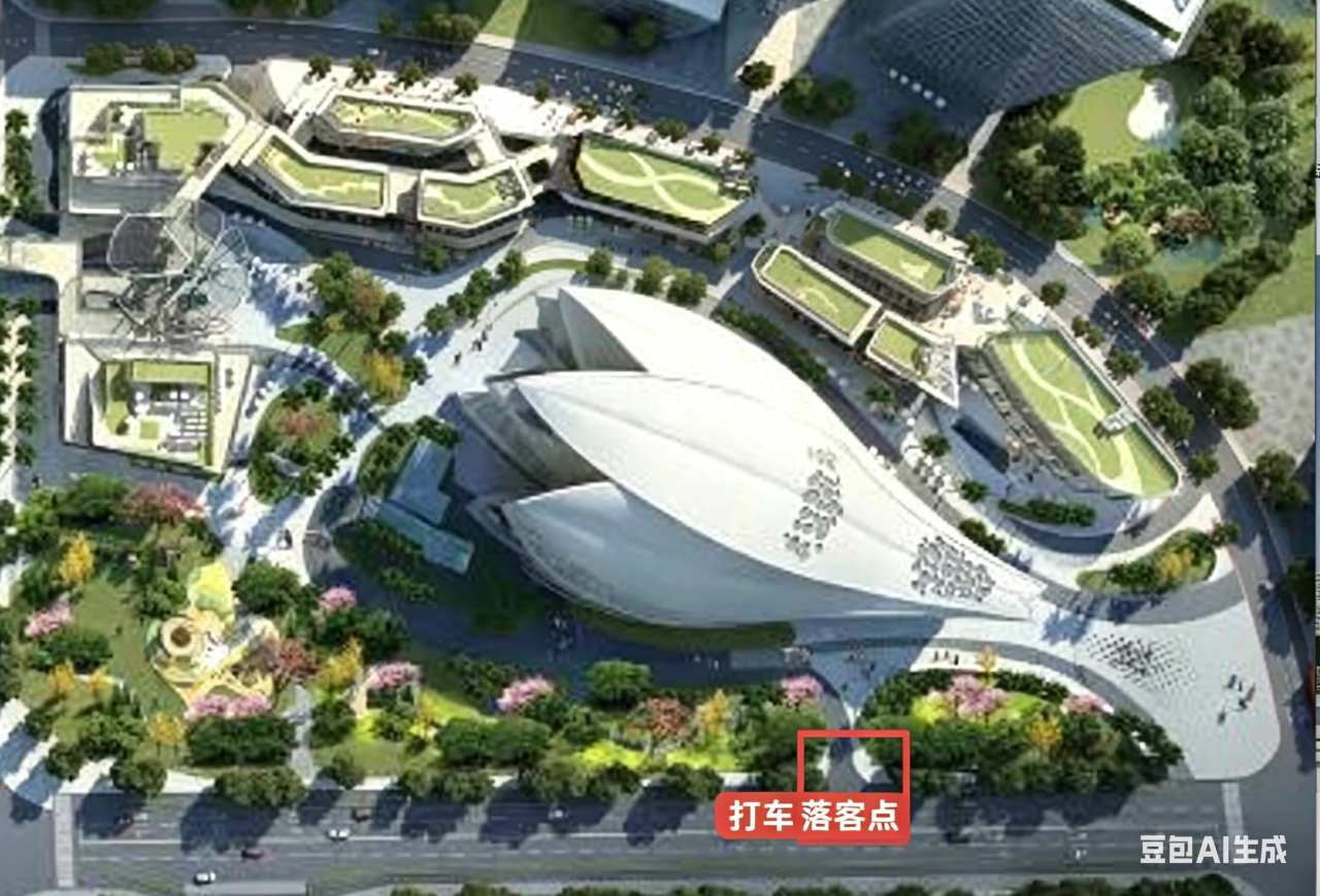 于图示落客点下车后,于体验馆3号门进入,根据现场指引前往5楼土茯苓宫即可。