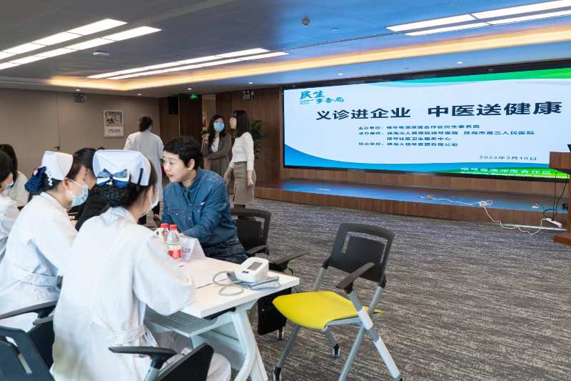 为进一步普及中医药健康养生知识,增强企业职工健康观念及疾病预防意识,2023年3月10日下午,横琴粤澳深度合作区民生事务局邀请珠海市人民医院横琴医院、珠海市第三人民医院十余名专家走进珠海大横琴集团,开展中医主题义诊活动,为企业职工提供上门医疗服务。