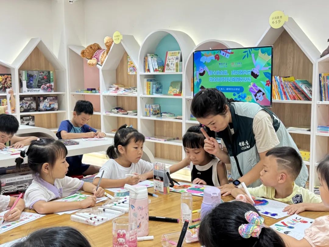 活动吸引了 近40名琴澳青少年儿童参加 共创作出30幅作品 作为国内最高水平的综合性体育盛会,全运会不仅是竞技体育的巅峰舞台,更是全民共享的体育盛宴。 本次志愿服务活动以艺术创作为载体,通过生动有趣的课件讲解,向琴澳青少年儿童普及全运会的历史、赛事项目及体育精神,进一步加深琴澳青少年儿童对全运会的认识与认同。 自由创作环节中,孩子们化身为“全运会小使者”,在横琴民生志愿者的协助下,以画笔描绘心中的全运会盛景。 吉祥物、运动健儿、竞技瞬间等元素跃然纸上,一幅幅充满童真与创意的作品,不仅展现了琴澳青少年儿童对体育的热爱,更传递出全民参与、健康向上的全运会精神。 活动现场精选优秀作品进行装裱展示,形成小型主题画展,吸引众多观众驻足欣赏,成为全运会文化与艺术创意交融的生动缩影。 不仅为琴澳青少年儿童搭建了一个 展现自我、交流互动的平台 也为十五运会的到来 营造了浓厚的氛围 下一步 横琴民生志愿者队伍 将组织更多形式多样的 志愿服务活动 让更多琴澳居民 参与到全运会的热潮中 聚焦服务“十五运会” 让全运会的活力与激情 在合作区持续绽放