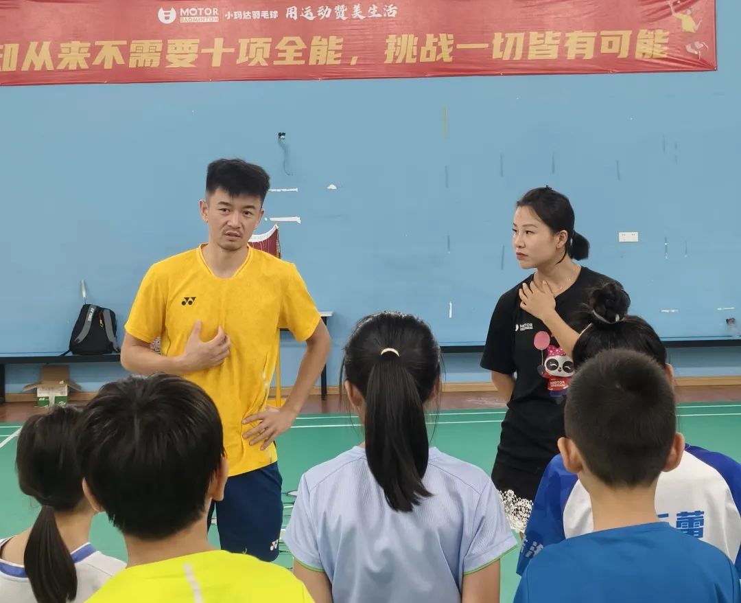 他为横琴青少年羽毛球队队员献上专业的技术指导和宝贵的精神财富。