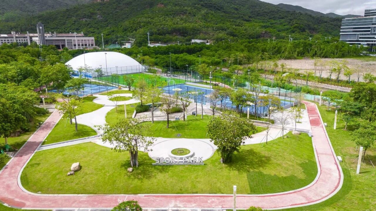 横琴社区体育公园位于横琴国际网球中心西侧,园内拥有一条400米的环形跑道,环绕绿地与运动场地布局,为琴澳居民提供安全舒适的跑步与健走空间。