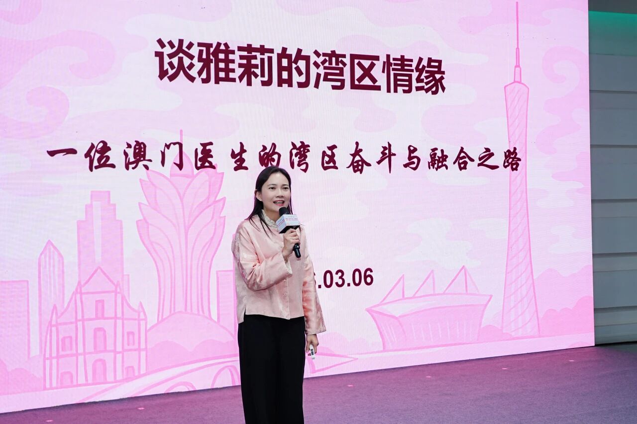谈雅莉结合自身深耕湾区医疗领域经验,讲述了从内地求学、深耕临床到推动粤澳医疗协同发展的动人故事,细数大湾区医疗融合的实践成果与未来机遇。谈雅莉的分享既体现了巾帼医者的坚韧与细腻,更展现了澳门青年融入国家发展大局的初心与担当,现场的每一位嘉宾都深受感染和鼓舞。