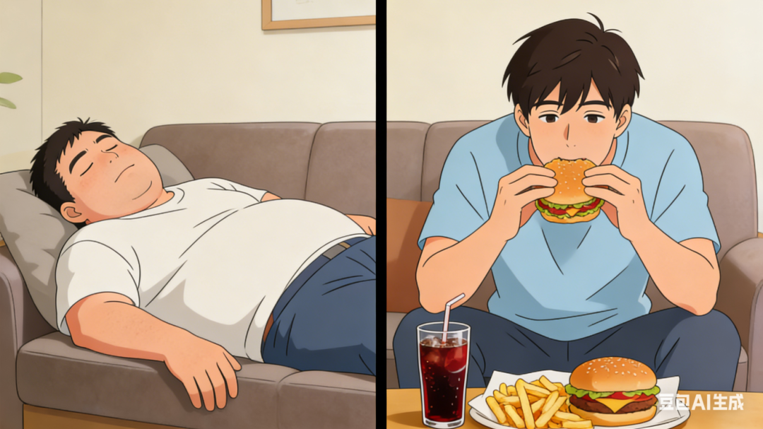 长期高压会让“压力激素”(皮质醇)飙升,它不仅会把脂肪“定向搬运”到肚子上,形成难减的“游泳圈”,还会催着你想吃高糖高脂食品,用来缓解焦虑,形成“压力→贪吃→变胖→更焦虑”的死循环。