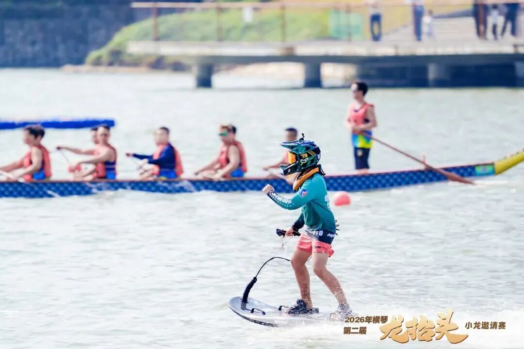 点睛鸣笛后,现场还带来了由澳门动力冲浪板协会呈现的精彩表演,为赛事注入了现代水上运动的激情与活力。传统龙舟的团结拼搏与现代冲浪的个性飞扬相互映衬,生动诠释了水上运动文化在传承与创新中的交融共进。
