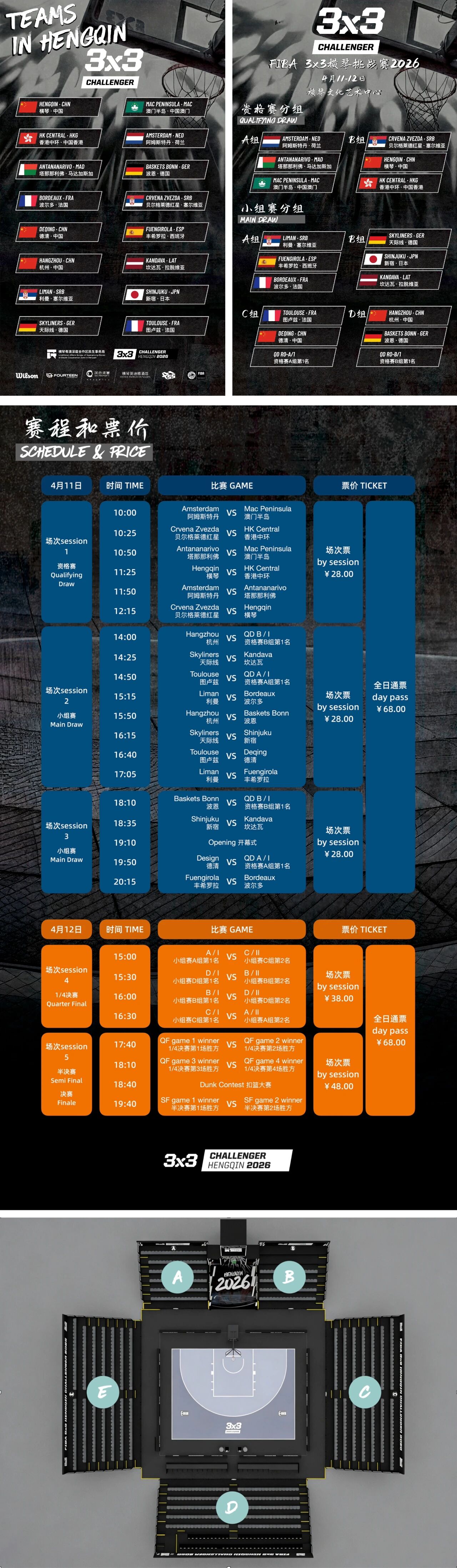 4月12日下午展开1/4决赛,晚间迎来半决赛与最终决赛,全程赛事激烈连贯,为观众带来不间断的篮球盛宴。
