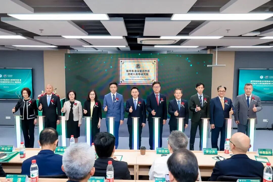 在主礼嘉宾的见证下,横琴澳城大高等研究院暨澳门城市大学知识转移转化中心正式揭牌。