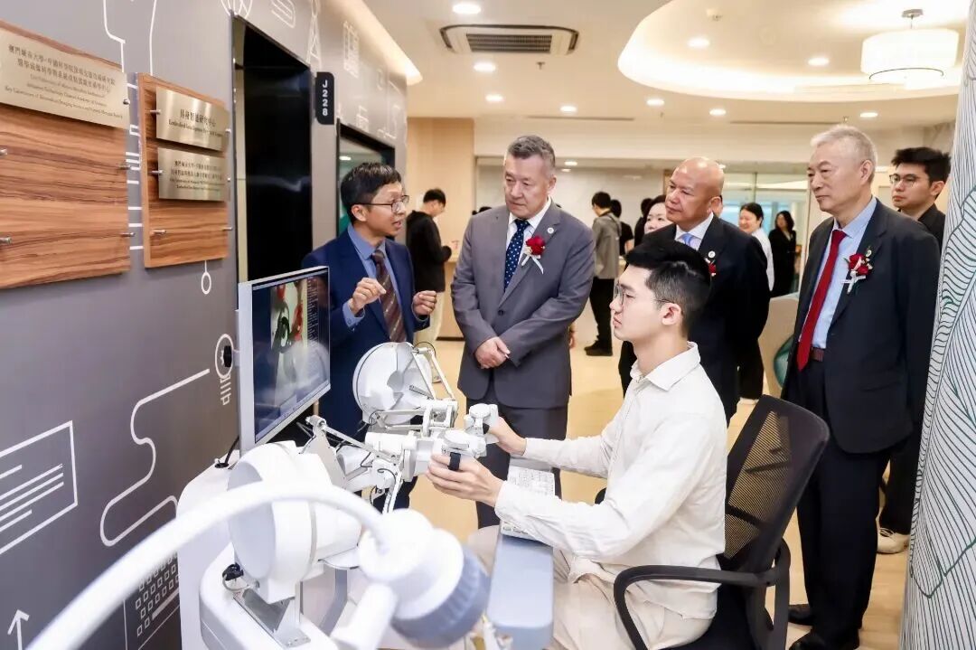 仪式上,澳城大系列科研成果精彩亮相。其中,由横琴澳城大高等研究院学术带头人辜嘉教授领衔团队研发的HEROS经自然腔道手术机器人系统项目正式签约入驻,该项目将依托知识转移转化中心之概念验证中心平台,开展技术优化、产品测试与市场转化等工作,推动手术机器人技术的临床应用与产业落地。