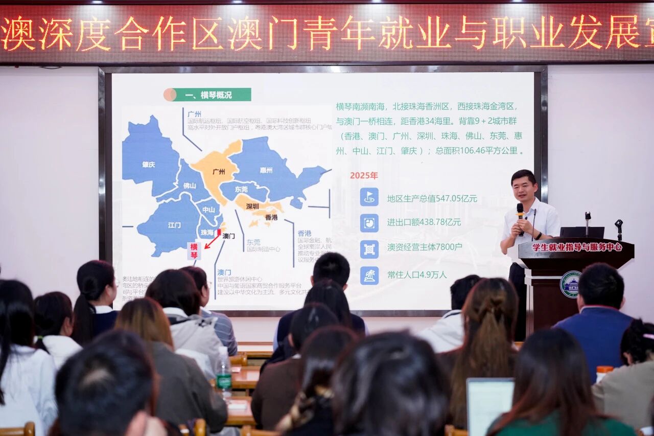 在武汉大学专场举办前,合作区面向在湖北高校就读的澳门青年开展合作区职业发展环境推介,深入解读了合作区支持澳门青年就业相关政策