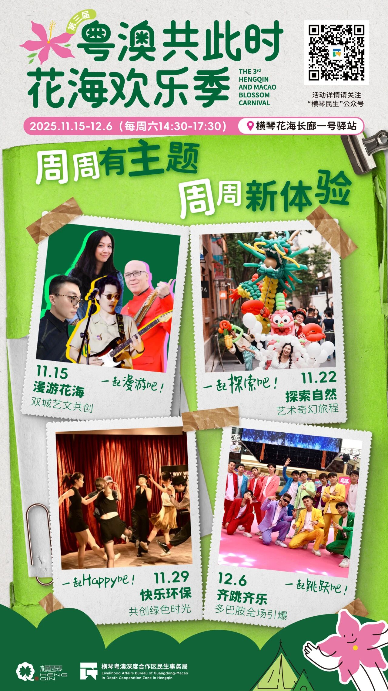 本次活动以“琴澳艺文、自然探索、可持续环保、全民运动”为脉络,贯穿横琴花海长廊一个月的樱花木棉花期,旨在打造琴澳居民休闲文化生活新场景,推动两地文化共融、民心相通。