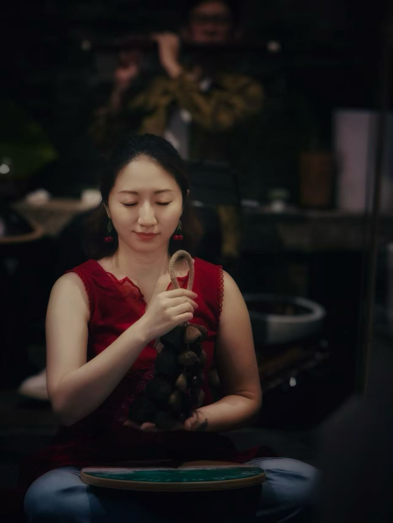 *澳门当代水墨画家卢绍仪与她的作品《草堆街·摇曳的记忆》,本次活动将以不倒翁形态在花海呈现,触碰摇曳间唤醒老街记忆。