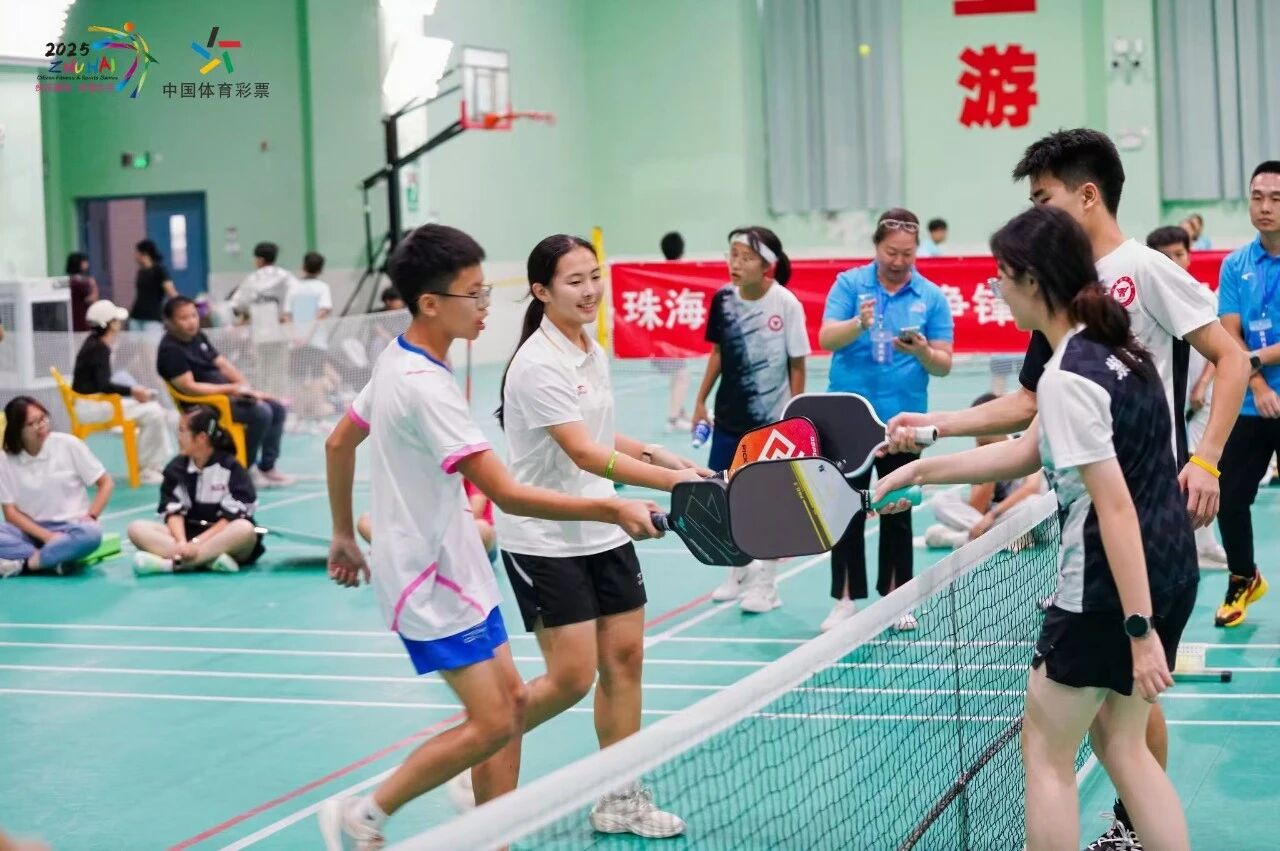 匹克球运动近年来备受青少年喜爱,越来越多的青少年投身在该项运动的训练当中。本届赛事的匹克球赛竞争同样激烈。队员们凭借灵活的跑动、精准的击球和默契的配合,在赛场上展现出超强的适应性与竞争力,抽球、吊球等精彩战术轮番上演,让现场观众连连喝彩。
