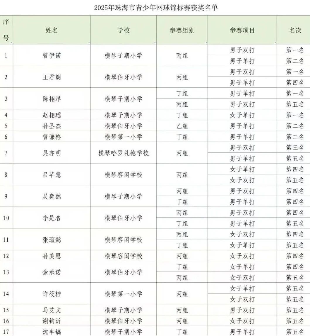 每一枚奖牌都见证着他们的成长,出色的竞技状态与扎实的梯队建设,为横琴网球运动的发展注入了青春活力。