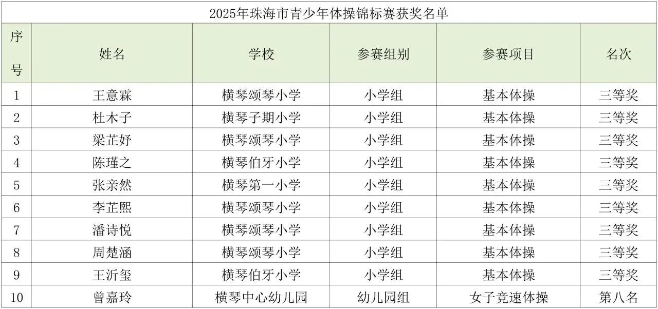 尽管体操项目对基本功和心理素质要求极高,这支“一岁之队”依然顶住压力、发挥稳定,共斩获1个前八名和1个三等奖。这份成绩见证了队员们的快速成长,也为横琴体操运动稳步发展打下了基础。