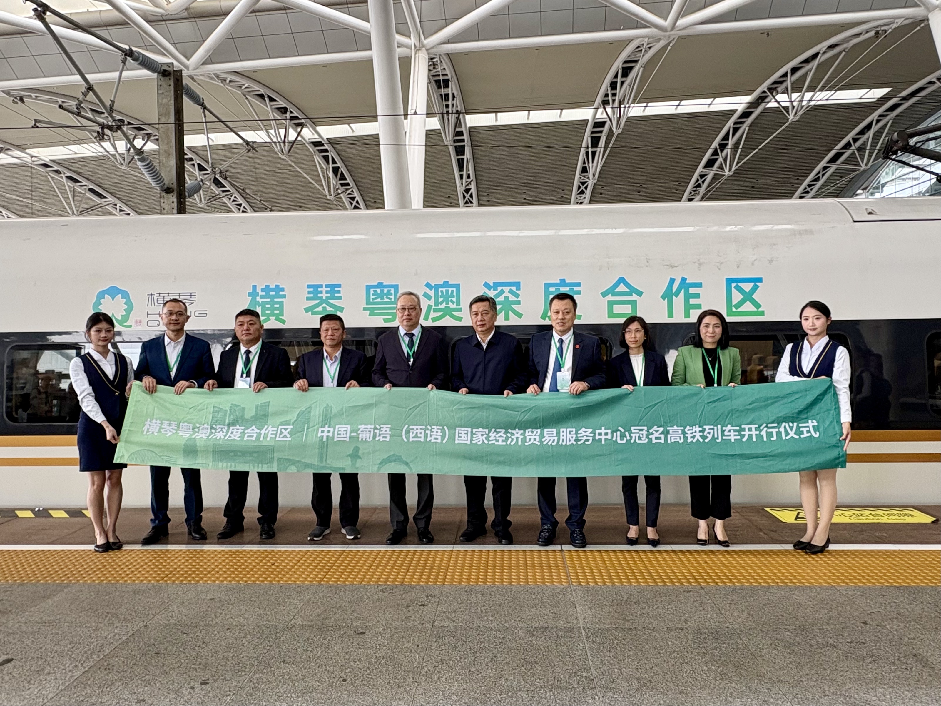 On February 5, a high-speed branded train jointly named by the Guangdong-Macao In-depth Cooperation Zone in Hengqin and the Service Centre for Economy and Trade between China and Portuguese/Spanish-speaking Countries (CECPS) departed from Guangzhou South Station, utilizing China’s high-speed rail network to amplify Hengqin’s economic influence across the Guangdong-Hong Kong-Macao Greater Bay Area (GBA).