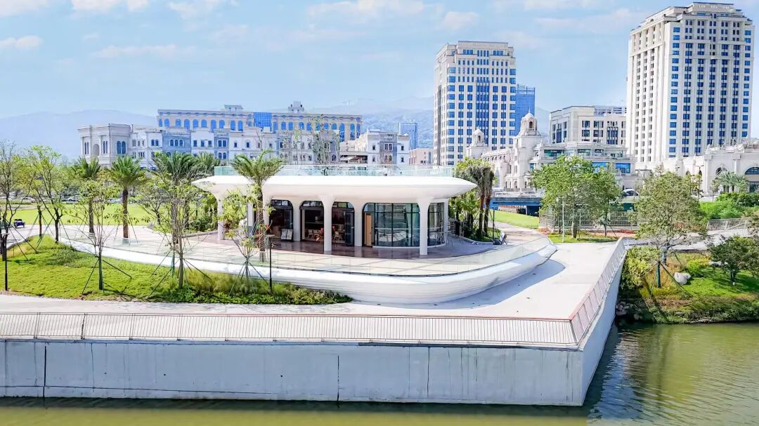 来到横琴,先去天沐河畔解锁 “水岸三部曲” 的浪漫吧!天沐琴台旁的余音驿站和莲涟驿站就是藏在城市里的宝藏地。