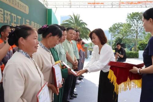 随后,谭惠芳、梅晓为今年评选出的24名优秀环境美容师进行表彰,感谢他们为城市作出的贡献。“宁愿一人脏,换来万家洁”,一线环卫工人代表罗婉玲称,自己的工作很有意义,也很有价值感,“能为社会贡献微薄的一份力,我感到很自豪。”