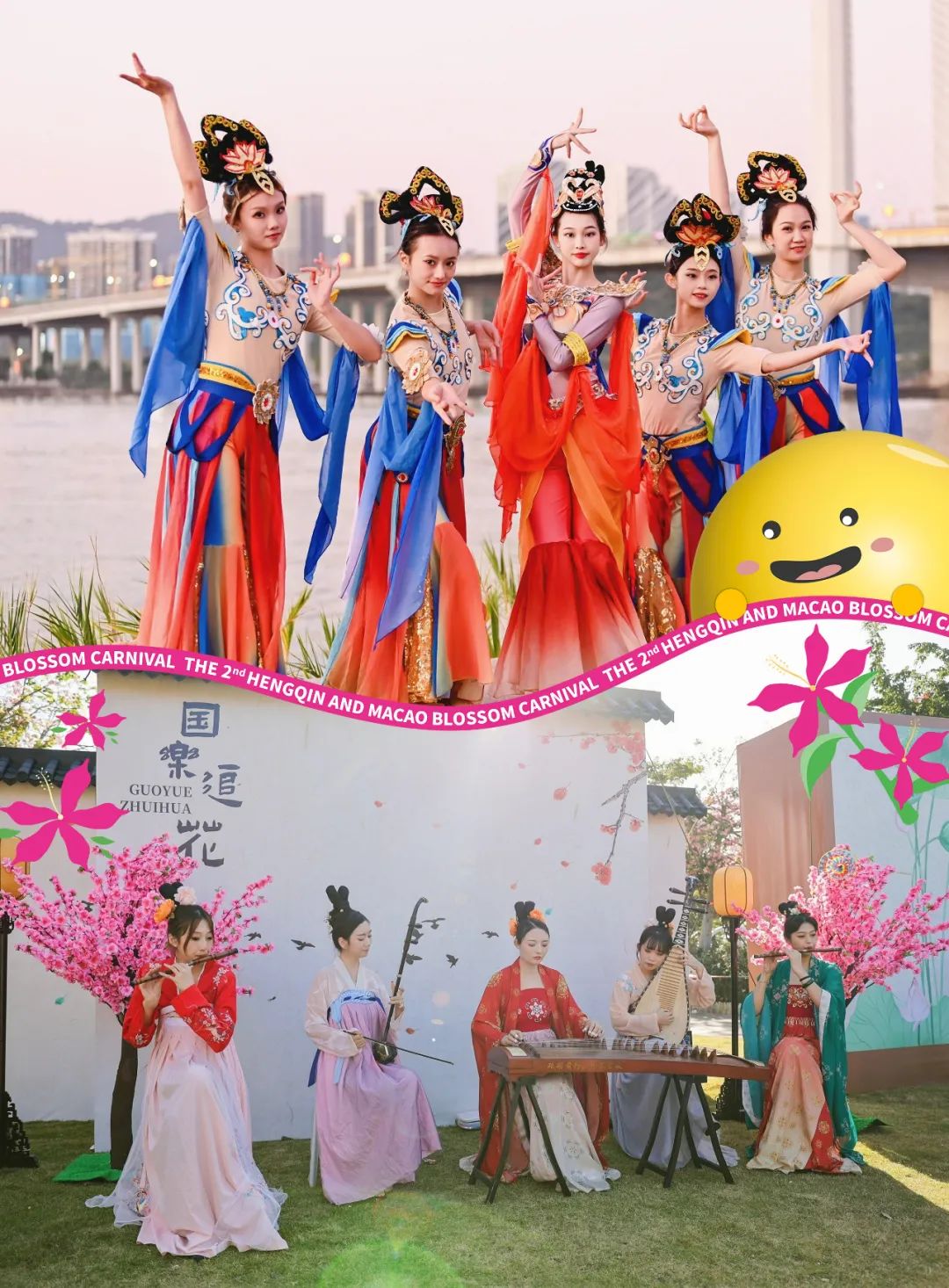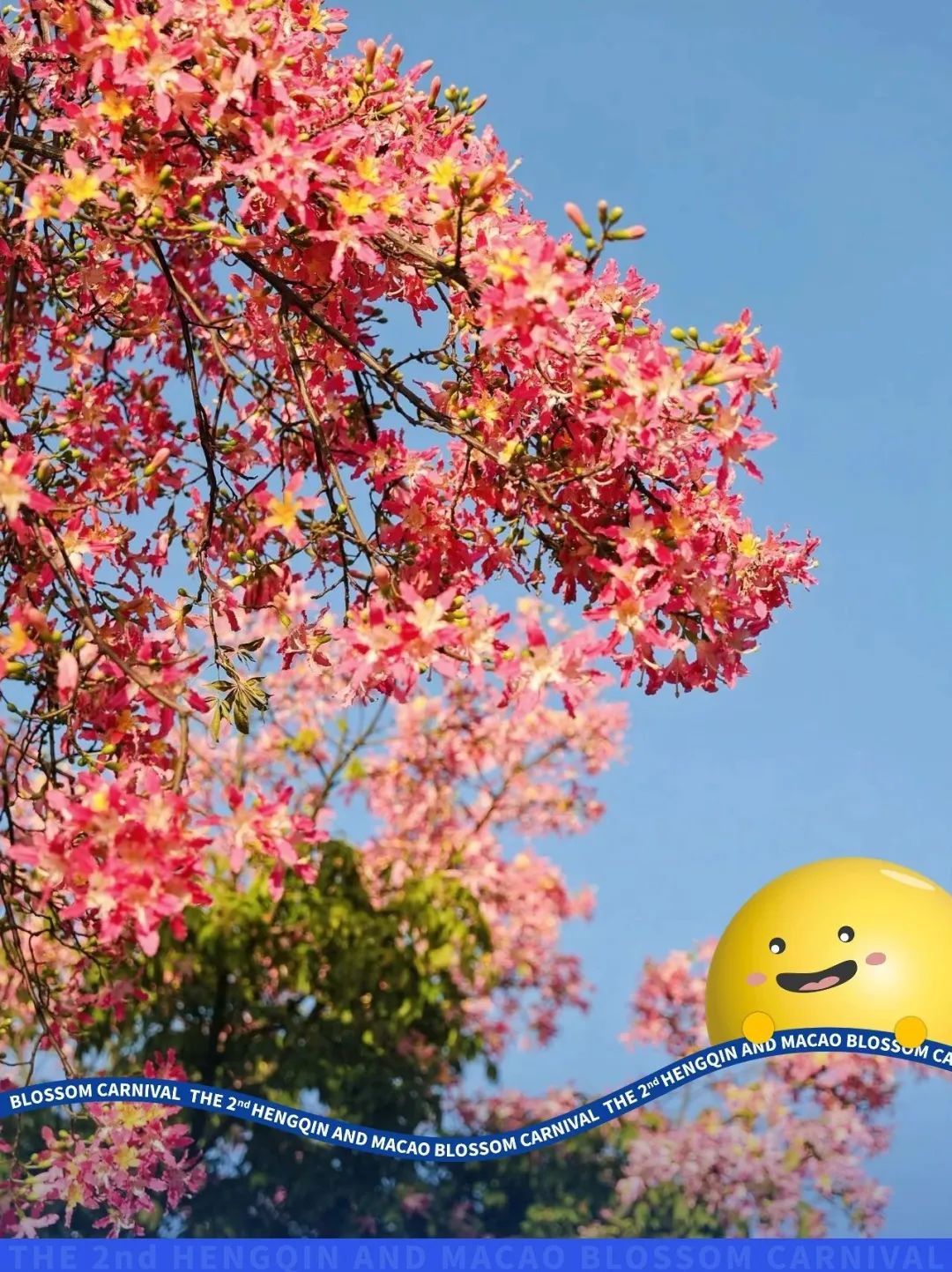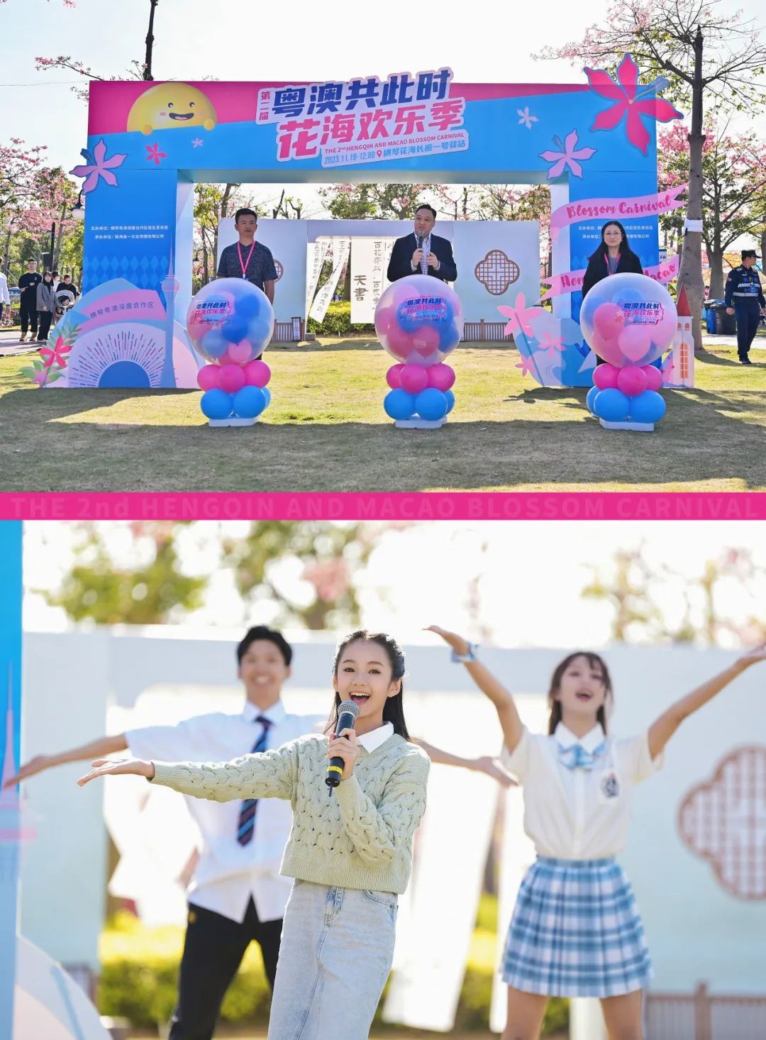 澳门歌手王心妤以《同行》的活力歌声点燃现场,市民和游客在延绵十公里的樱花木棉树下,共度“花海时空之旅”首秀。