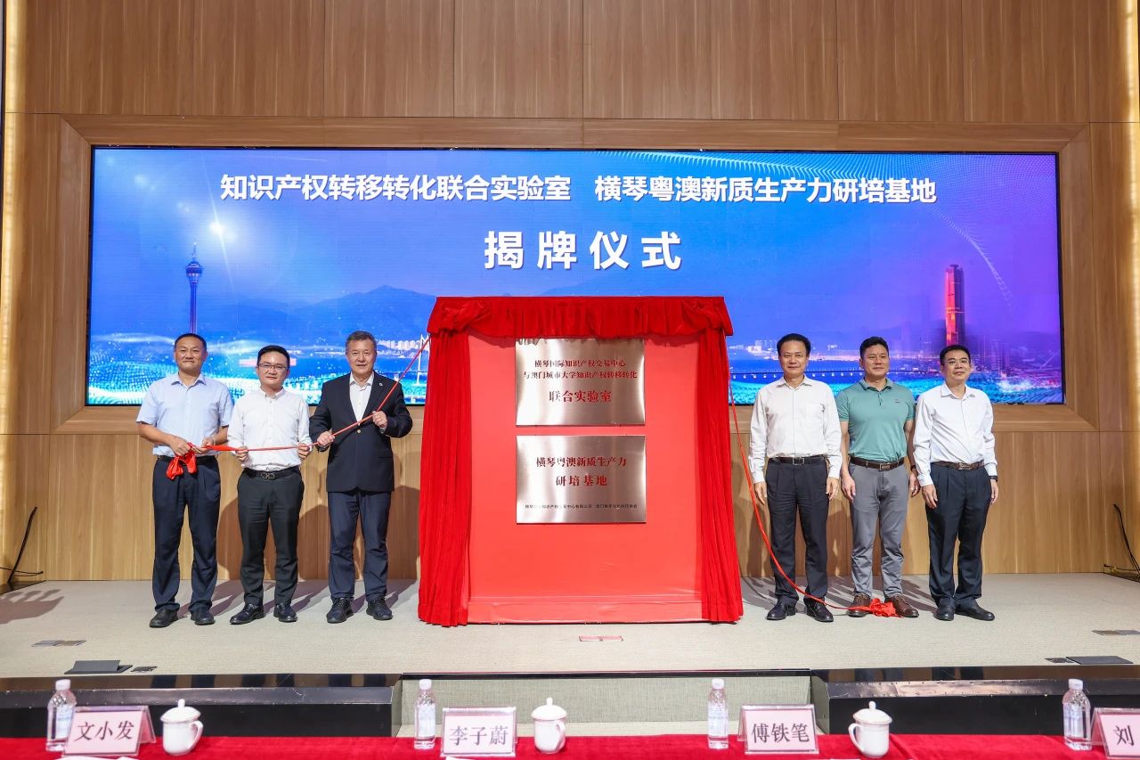 9月26日,华发集团旗下横琴国际知识产权交易中心与澳门城市大学成立知识产权转移转化实验室暨与澳门数字文化科技协会成立横琴粤澳新质生产力研培基地揭牌仪式在横琴粤澳深度合作区举行。广东省市场监督管理局二级巡视员傅铁笔、横琴粤澳深度合作区经济发展局局长李子蔚、澳门城市大学校长刘骏、澳门数字文化科技协会会长张森华、横琴国际知识产权交易中心董事长夏德兴出席活动并致辞。