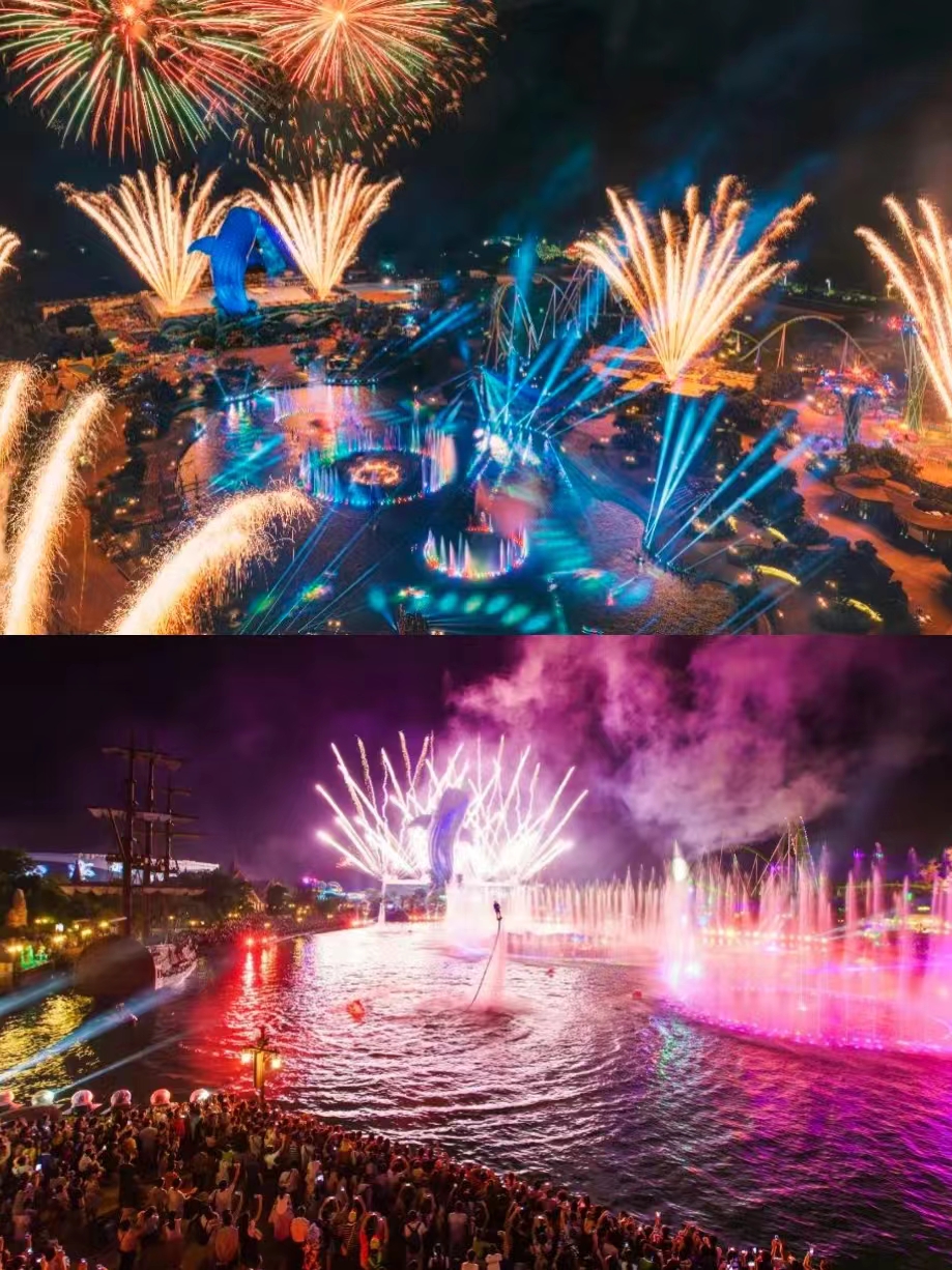 晚上的国庆版海洋幻彩烟花秀更是不容错过。届时,数百种烟花将划破天际,300台无人机方阵献礼五星红旗等闪耀夜空。每天还有 5 组幸运游客可亲手放烟花为祖国庆祝。