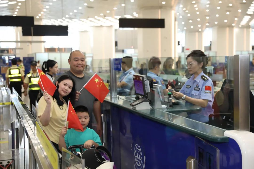 繁忙的旅检大厅内,过关旅客手中挥动的小国旗,为口岸增添了不少节日氛围。由于横琴口岸具有24小时开放、交通便利等特点,吸引大量旅客将其作为通关首选。