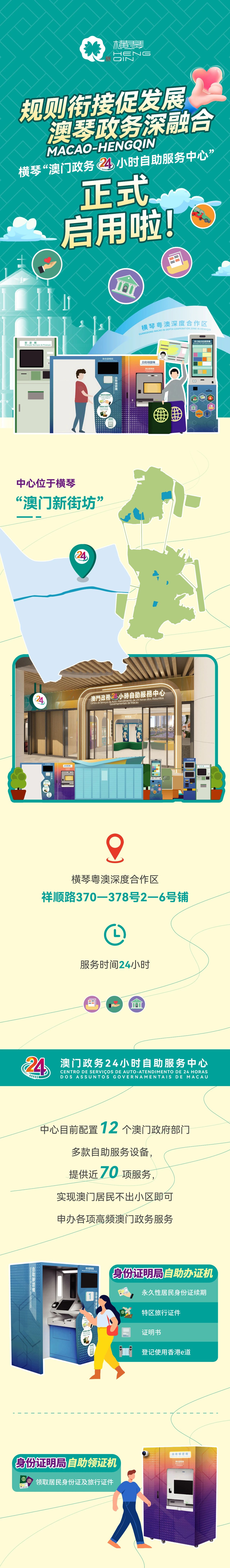 澳门政务24小时自助服务中心位于合作区祥顺路370-378号2-6号铺,由澳门特区政府与合作区执委会联合筹建。