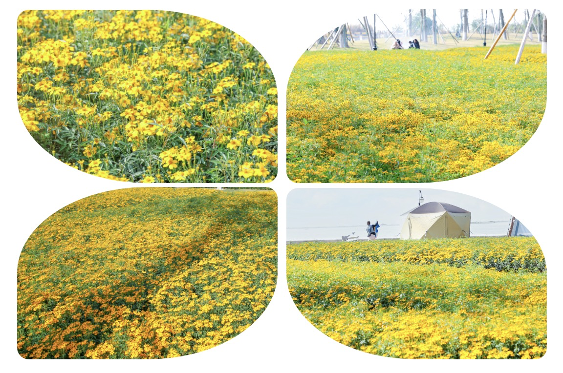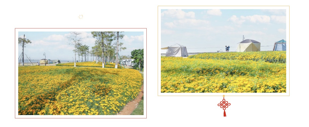 寓意长寿与幸福的芳香万寿菊,以灿烂的金黄色为主色调,如同阳光洒落在大地上,为这片土地披上了一层绚丽的外衣。