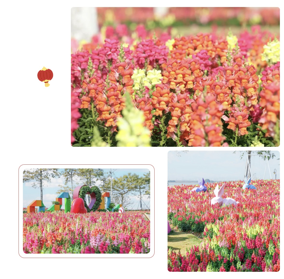 匠心独运的节日造景与绚丽花海,承载着新年的美好憧憬与无限希望,传递着迎春的温暖与喜悦。