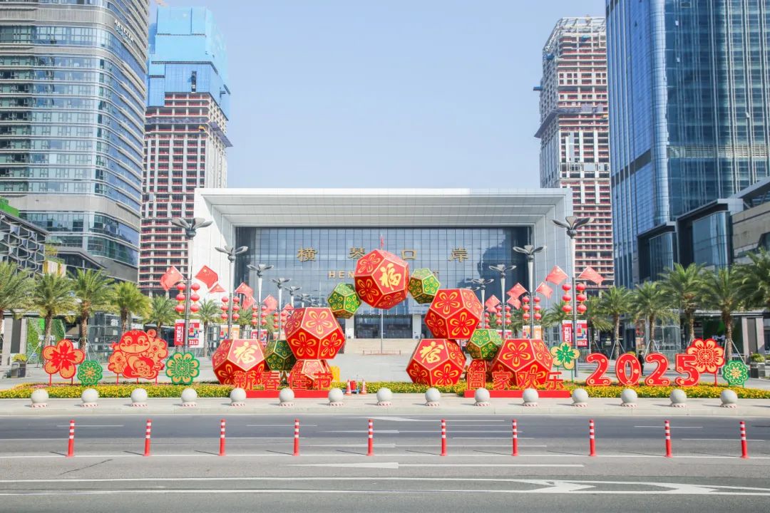 新春佳节将至,横琴粤澳深度合作区的街头巷尾早已被节日的喜庆氛围装扮一新。