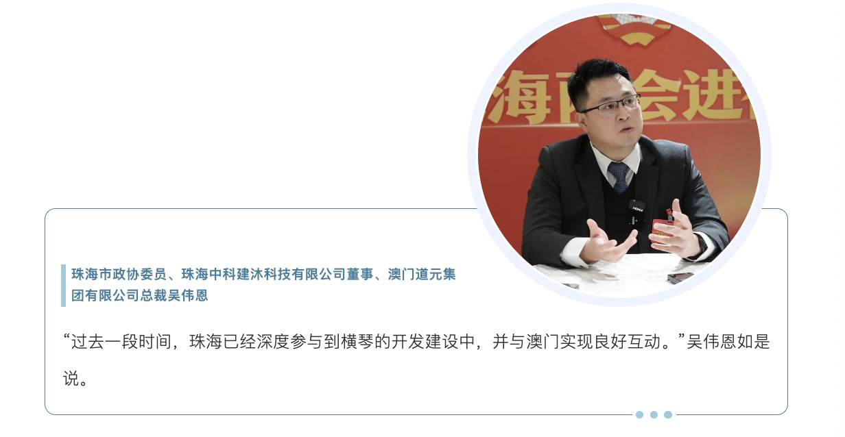 2月19日起,珠海进入两会时间。今年,不少珠海市人大代表、政协委员将目光聚焦到推动区域一体化发展,纷纷围绕“支持服务横琴粤澳深度合作区建设、促进澳门经济适度多元发展”建言献策。