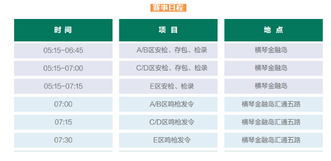1.计划6:20前抵达的选手推荐横琴华发商都和横琴口岸广场就近停车,其中横琴口岸广场附近停车便利,建议选手在此停车后免费换乘摆渡车抵达起点。