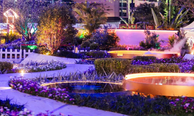 展园运用AI与全息投影技术,融入互动艺术墙、透明亚克力装置等现代科技元素,将自然景观与人文艺术完美结合,营造三维立体艺术效果,打造出一个多维度的沉浸式体验空间。