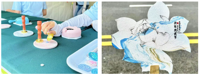 帐篷区提供“荷塘火漆冰箱贴”“荷花漆扇”等手作体验,还有“葡砖拼图”“荷叶泡泡机”等多个游戏尽情畅玩,游客在完成游戏通关后,还可获得精美礼品。